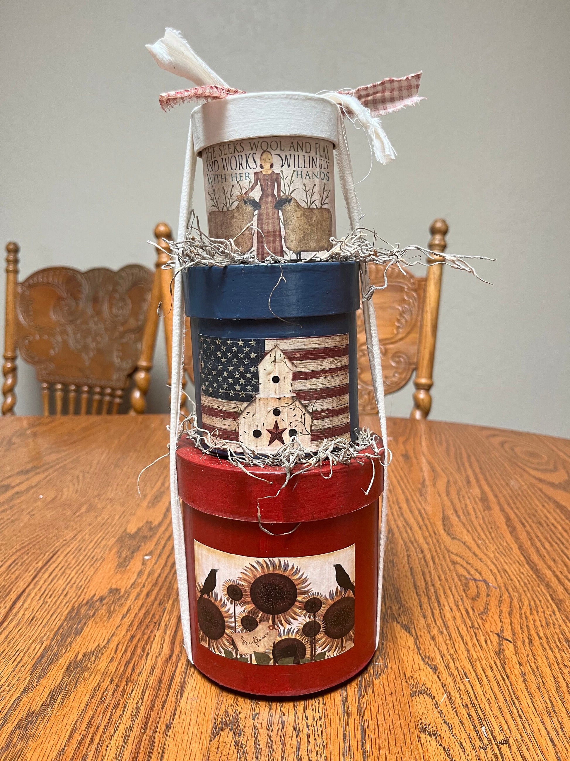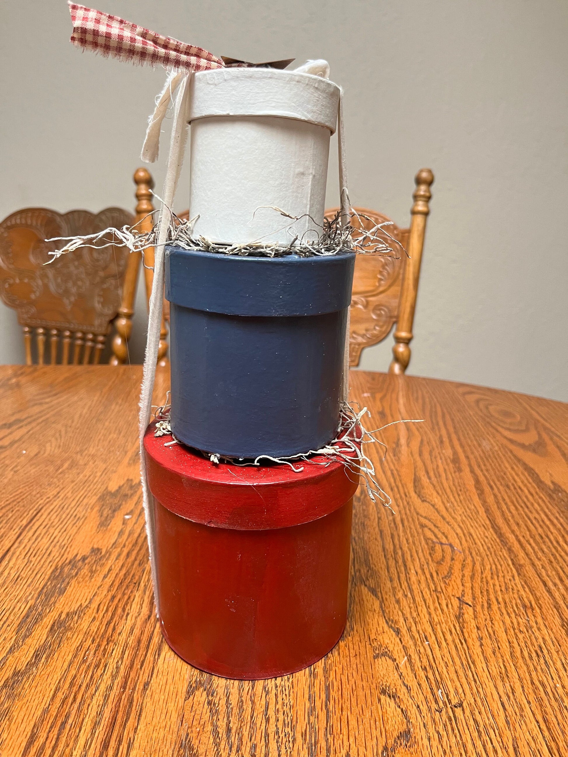 Primitive Patriotic Hand-Painted Boxes Set of 3 | Rustic Americana Decor, Round Nesting Boxes for Country Home Decor