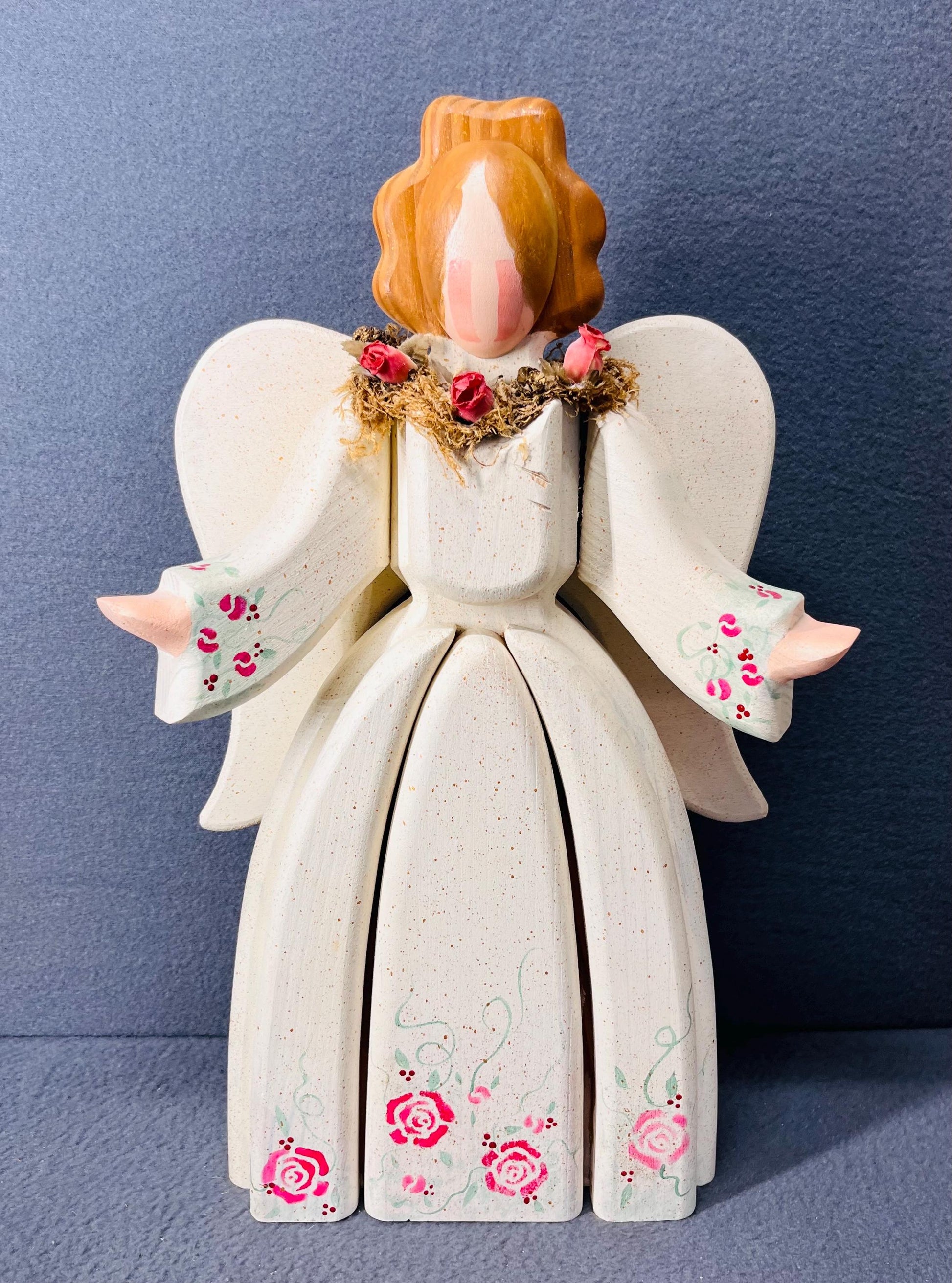 Tole Painted Wood Angel Decor, Handcrafted Rustic Christmas & Holiday Home Accent, Unique Gift for Winter Season