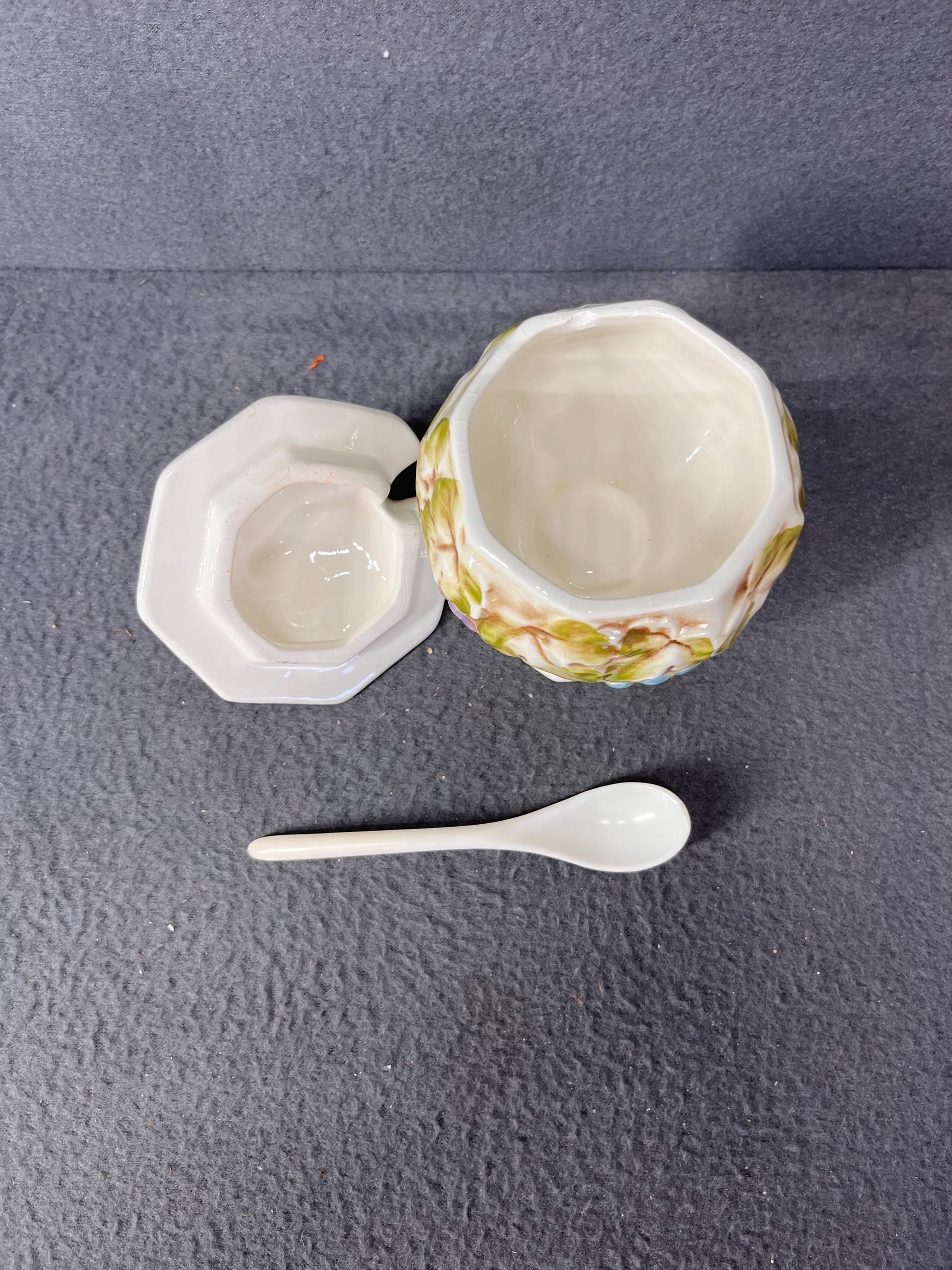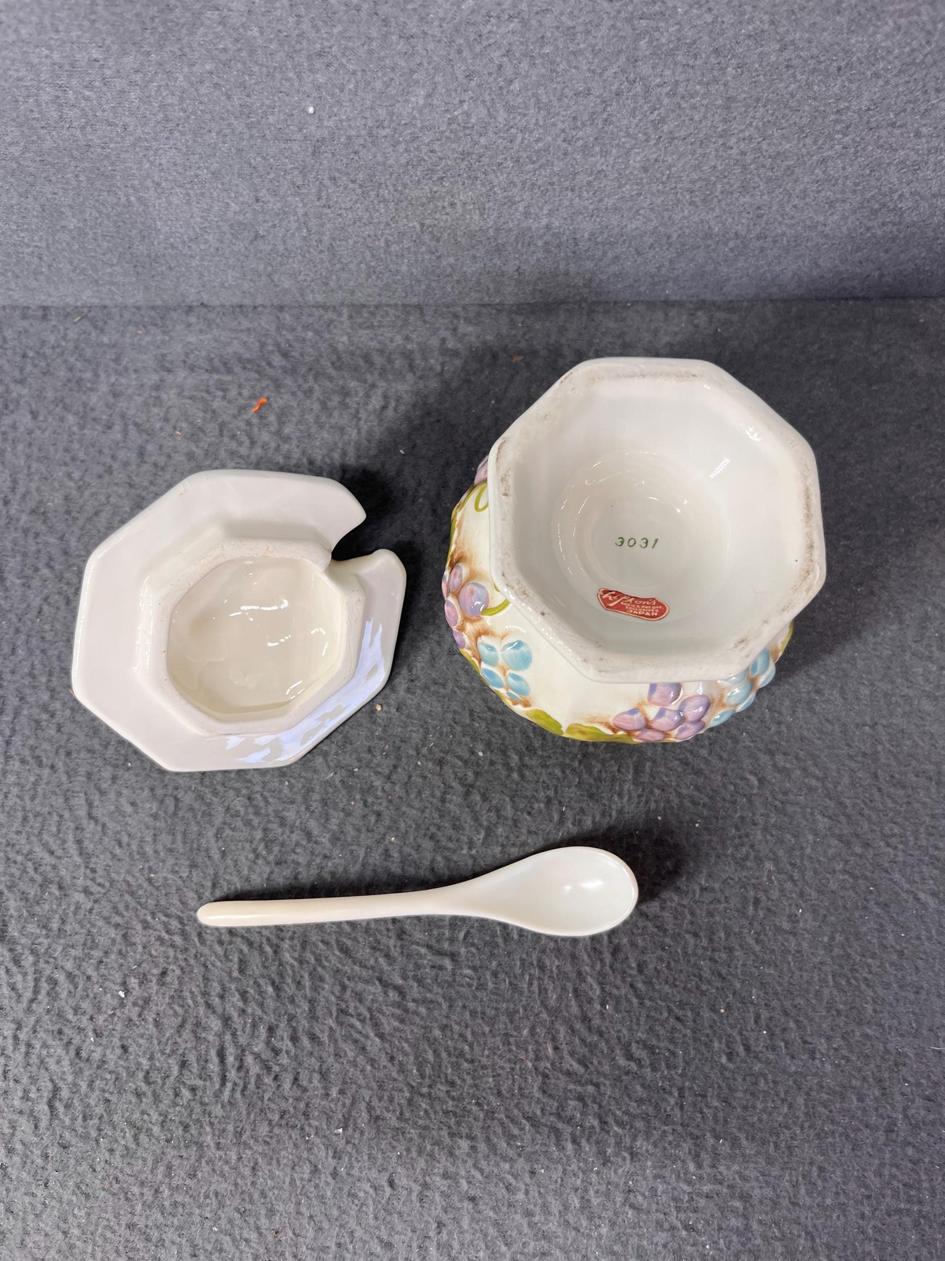 Vintage Lefton Grape Motif Jelly Jam Honey Jar with Spoon Grapevine Japan Collectible 3031
